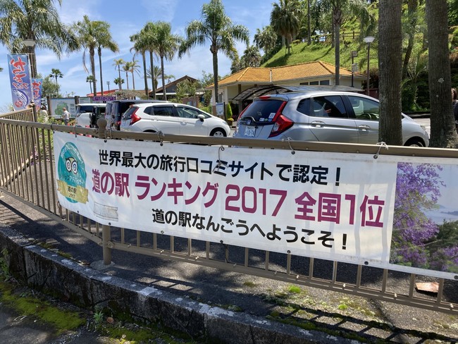 「道の駅なんごう」は海に面しており、絶景を見ながら軽食や名物のマンゴーソフトクリームが楽しめます。直売所では季節ごとの果物がお手頃な価格で買うことができ、今の時期はマンゴーが豊富です。また、ジャカランダの苗も買うことができます。