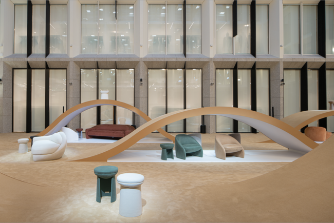 ミラノ・デザインウィークのために制作されるインスタレーションは、パーム・シリーズのしなやかなラインに着想を得ています。来場者は、巨大な砂丘に見立てた柔らかいカーペットの会場で没入型の旅をし、そこでナヴォがデザインした「生き物」に出会います。ある場所では砂丘の上に立ち、風景を見渡すかのように、ある場所では砂丘の中の洞窟に潜ります。そこには新作が組み合わされて展示されています。ナヴォがよく言うように、パームのオブジェに手を伸ばして体験することで、来場者とオブジェの間に関係性が生まれ、個人的で自然なつながりを感じ取ることができるでしょう。