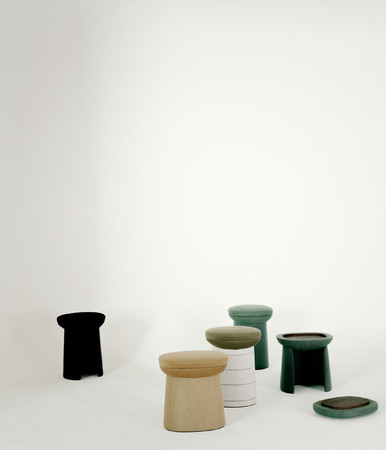 人型の生物の頭と体のようなデザインのパームスツール。パーム・シリーズの中でもっとも遊び心あふれるアイテムです。サイズは2種類あり、小さい方は座面が取り外し可能で、テーブルやトレイとしても使用できます。ファブリックと木材のリバーシブル仕様。構造部分と座面に異なる素材を組み合わせた、遊び心のあるオブジェとしてデザインされています。家の中のどこにでも置くことができ、単体で使用することもパーム・シリーズの他のアイテムと組み合わせることもできます。ピュア・カシミヤやリネン、刺繍入りウールなどテキスタイルのバリエーションが豊富。