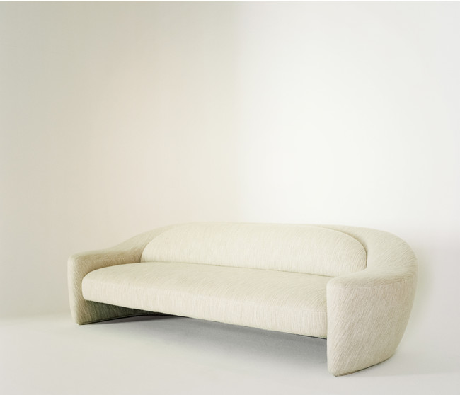 パーム・シリーズのしなやかなラインが特徴の大型ソファ。背もたれは完全に左右対称で、2つのアームレストはシェーズロングと同様のデザインです。ソファのすべての要素は入念に計算され、空間との調和を保ちます。座面と床の間の空間は、軽さとエレガントな印象を高めています。ミラノ・デザインウィークでは、ナチュラルカラーのリネン/コットン/ウールのブハラ・ブークレ・ファブリックとコネマラ・リネンのモデルを展示。