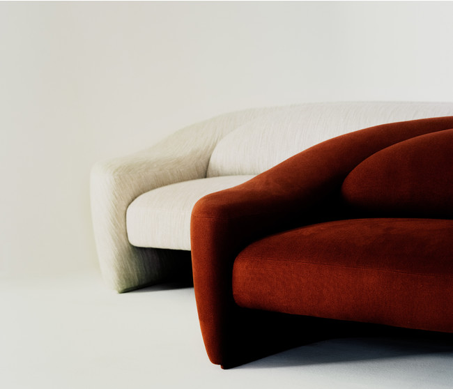 ラファエル・ナヴォとロロ・ピアーナ・インテリアの関係が始まったのは3年前のこと。両者は「職人技、柔らかさ、親密さ、くつろぎ、純粋さ、美しさ」という共通の価値観を持ち、「心地よさ、タイムレス、コンテンポラリー」を共通の言語として交流を深めてきました。コラボレーションで最初に誕生したのが2021年発表のパームデュエット・シェーズロング。ロロ・ピアーナのキャッシュファー・ファブリックの手触りが際立つしなやかなフォルムの家具です。パームデュエットは親密な関わりをテーマにしたオブジェでもあります。自分の時間を楽しむためにデザインされていますが、ゆったりとしたアームレストにもう一人座り、共に時を過ごすこともできます。
