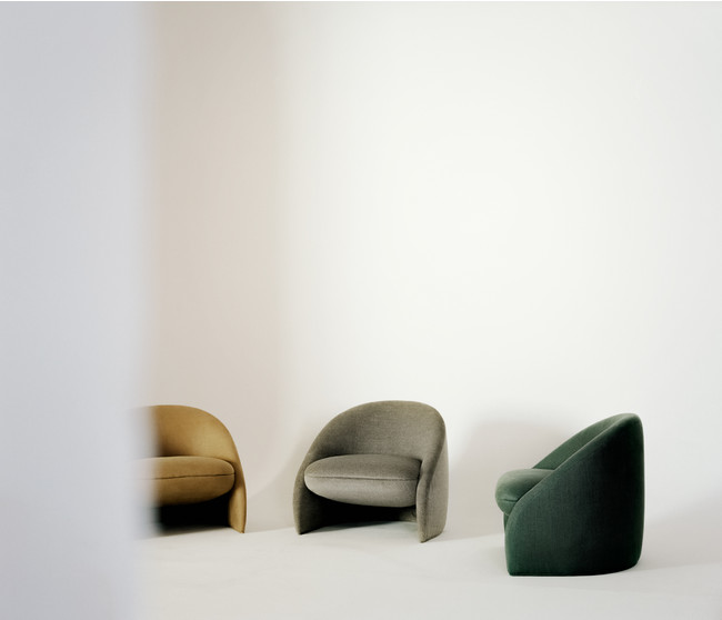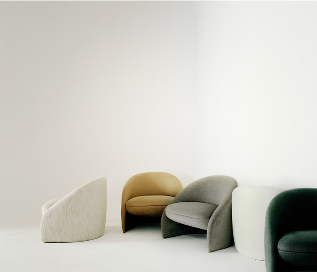 パームデュエットの特徴的なデザインは、ソファ、デイベッド、アームチェア、スツール、サイドテーブル、コーヒーテーブルから成る今回のコレクションにも採用されています。パームデュエットと同じしなやかな柔らかいラインのタイムレスでコンテンポラリーなデザインです。 それぞれのエレガントな個性を活かして単体で使用したり、組み合わせてくつろぎや親密さを演出し、会話を楽しんだりすることもできます。同じシリーズとして共通の「パーム」という名前が付けられています。人の手の平のように指を軽く曲げて人を招き、包み込み、心身を癒してくれます。