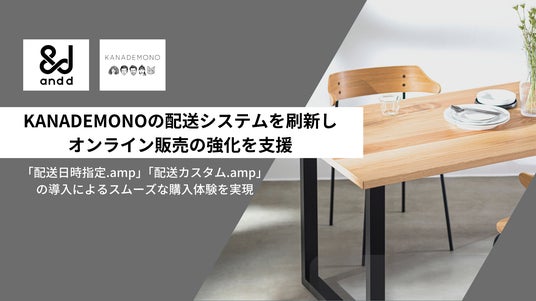 「いいモノゴトをおこす」をテーマに、Eコマース領域でアプリ開発事業を展開する株式会社and.d(本社:東京都町田市 代表取締役:深澤 大気、以下and.d)は、あなただけの「ちょうど良い」を実現するパーソナライズ家具のKANADEMONOを展開するルームクリップ株式会社KANADEMONOカンパニー(本社:東京都渋谷区 代表者:高重正彦、以下KANADEMONO)が運営するECサイトにおいて、and.dの提供するECアプリ「配送日時指定.amp」と「配送カスタム.amp」を導入し、配送システムを刷新いたしました。これにより、KANADEMONOはよりスムーズで効果的な配送運営を実現し、顧客満足度の向上を図ります。