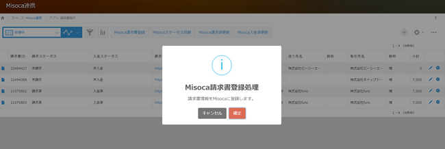 ◎kintone一覧画面からMisocaへ請求書を一括登録可能