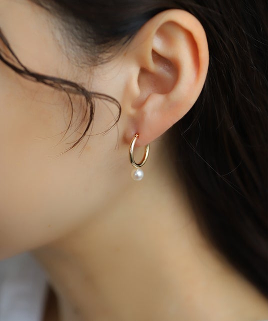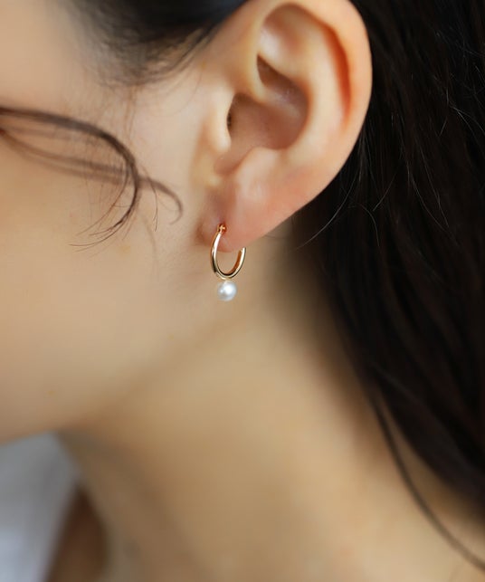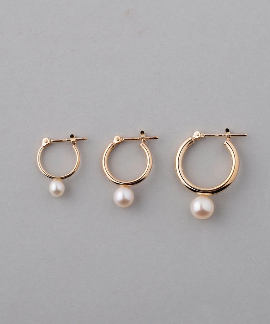 左から15,400円 / 19,800円 / 23,100円 ※全て税込価格パイプフープパールピアス素肌に馴染む柔らかい光を放つパールが、耳元を女性らしい雰囲気に仕上げるフープピアス。