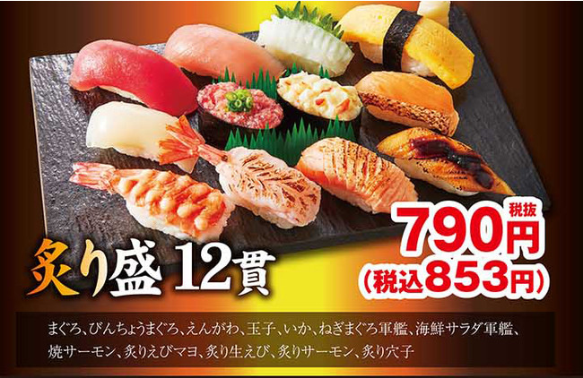フェアならではの炙りネタだけでなく、様々なネタを楽しめるバラエティ豊かな12貫盛り!