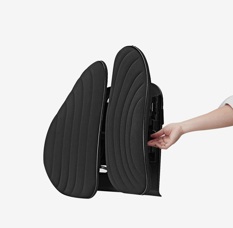背もたれの左右をフレキシブルに支え、様々な方向への体の動きに合わせて背骨サポートを維持します。