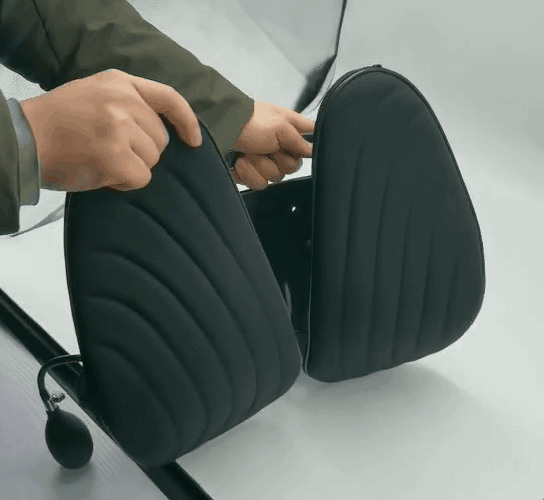 また、ポンプで腰にフィットするよう空気圧(ふくらみ具合)をカスタマイズ可能です。