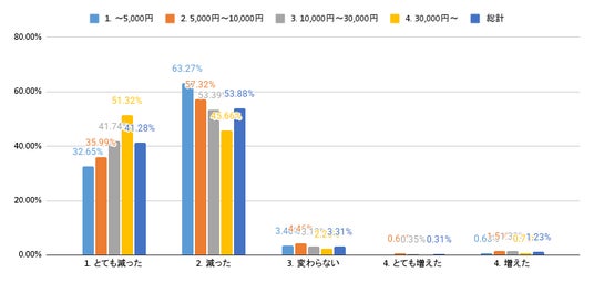 (顧客単価30,000円以上の店は、物量がとても減った51.3%、価格がとても高くなった78.1%)