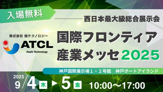 株式会社旭テクノロジー(本社:兵庫県姫路市、代表取締役:幸長 保之)は、2025年9月4日(木)・5日(金)に神戸国際展示場で開催される「国際フロンティア産業メッセ2025」に出展いたします。