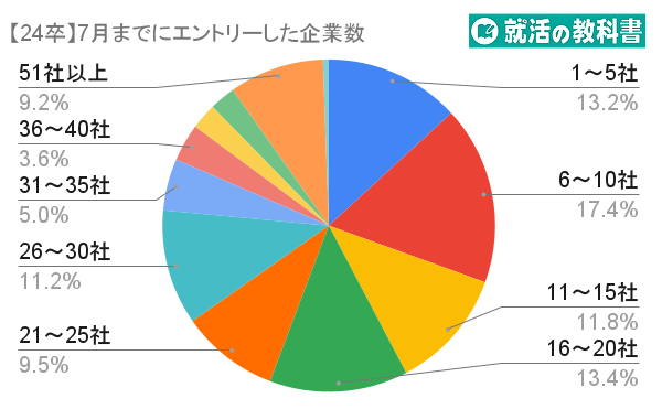 エントリーする企業数は人によってかなり変わるようですね。エントリー数の平均は21.12社です。各企業はまず、この21社の中に入れるように企業の認知やアピールをする必要があるでしょう。