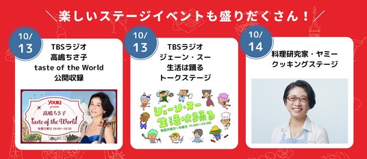 TBSラジオ「高嶋ちさ子 taste of the World」の公開収録、「ジェーン・スー生活は踊る」のステージイベント、人気料理研究家ヤミーさんによるステージも開催致します。