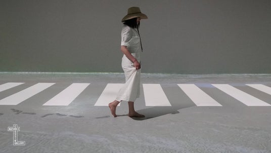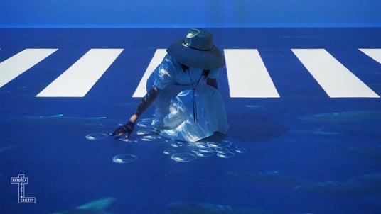 「NATURE CROSSING」では、約77平米の空間には合計13台のプロジェクターを使った4K映像が広がり、空間を繋ぐ象徴的な横断歩道が舗装されています。床面には動きを検知するセンサーが設置され、人々の足取りに反応し映し出される景色が変化。原宿にいながらもまるでその地に訪れたかのような、インタラクティブな体験を提供します。