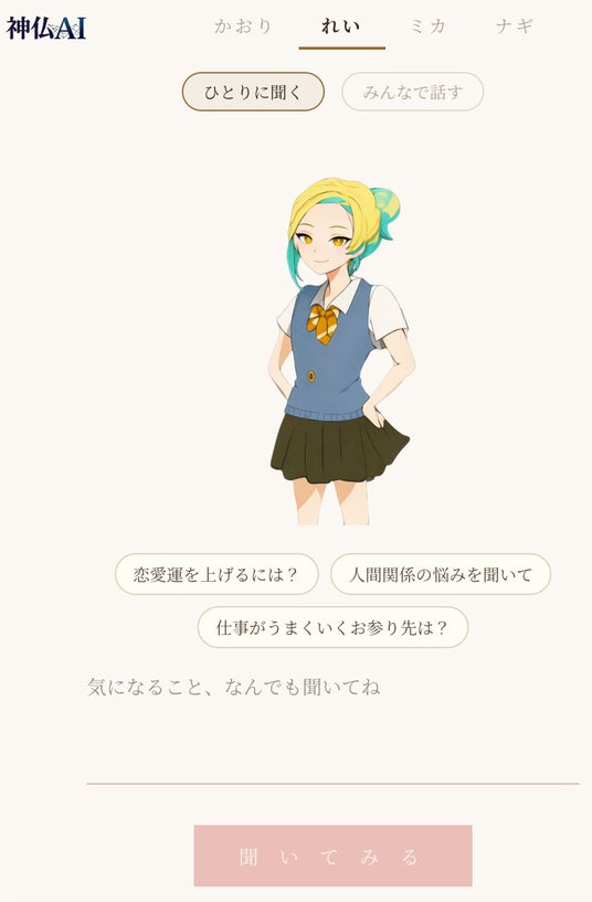話しかけやすく、使いやすく、無料のお悩み相談AI(神社仏閣限定)