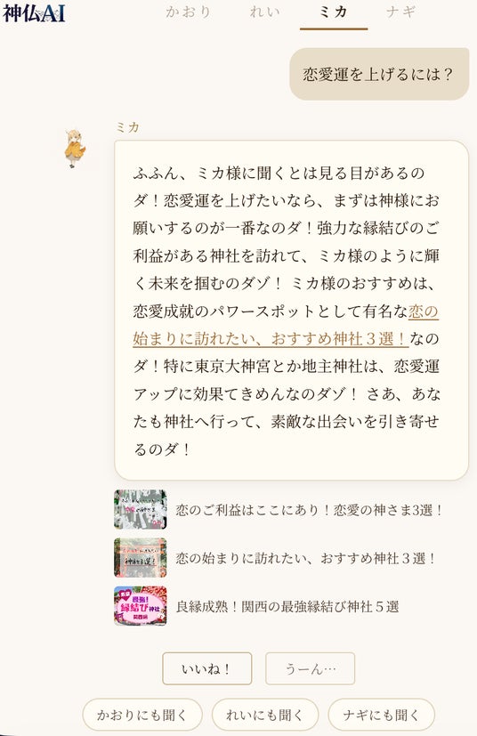 「記事や動画を作り続けてきた中で、“検索が面倒”という声を多くいただいてきました。神仏AIは、どのサイトよりも求める神社仏閣を楽に見つけられる体験を目指して、今年さらに進化しました。まずは気軽に、お悩みを相談してみてください。」