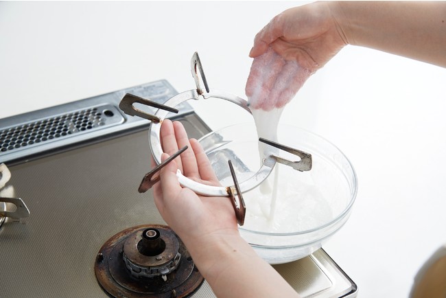粉石けんとぬるま湯でつくる「ゼリー石けん」は、複雑な形状の掃除に活躍