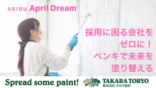 「Spread some paint!」を理念に掲げる、株式会社タカラ塗料(本社:大阪市西成区、代表取締役:大野一馬、以下 タカラ塗料)は、日本全国の中小企業が採用に困らない未来を創ることを目指しています。当社は、4月1日を夢を発信する日にしようとするApril Dreamに賛同しています。このプレスリリースはタカラ塗料の夢です。