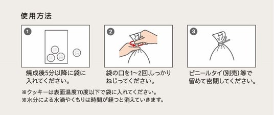 - 焼きあがったら「クッキーがおいしくなる袋」に入れる(冷ます時間は不要です)