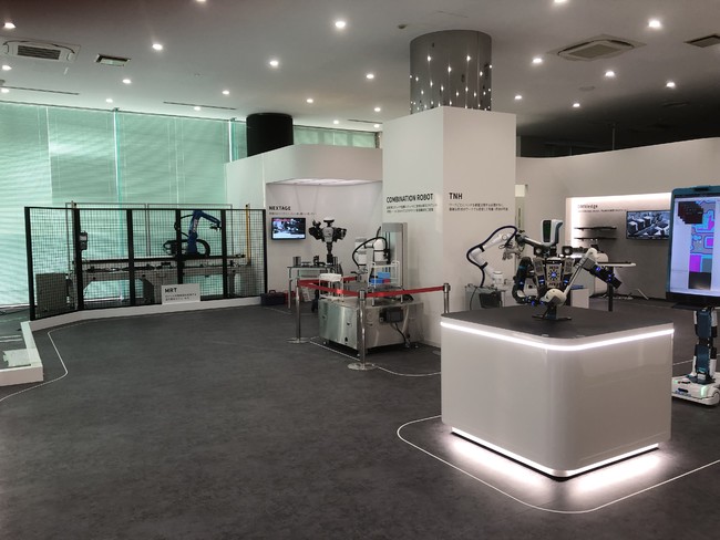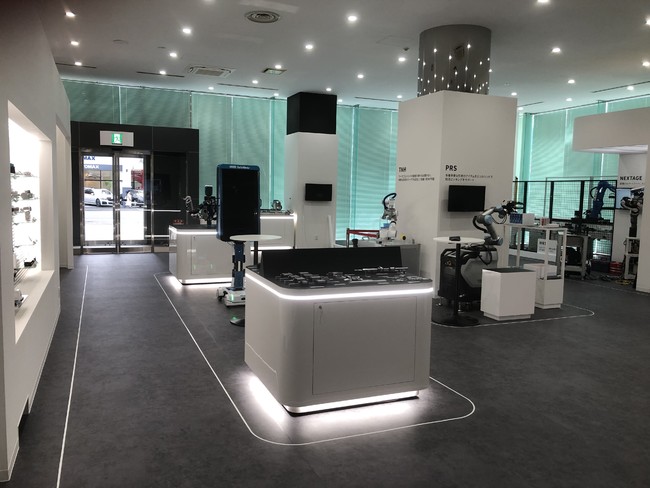 当センターは、LMガイド、ボールねじ、アクチュエータ等の主力製品の展示コーナーの他、部品の状態診断や予兆検知を実現するIoTサービス、そして自社で開発したサービスロボット、協働ロボット、搬送ロボット等のデモ機を常設展示し、最先端の自働化技術を間近で体験いただきながら課題解決の道筋につなげていく中核拠点としての役割を担います。