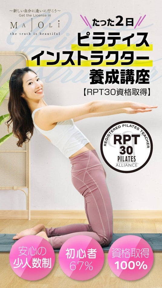 ピラティス・ヨガのインストラクター養成スクールを経営する株式会社MAJOLI(本社:東京都中央区、代表取締役:横幕真理、以下「MAJOLI」)は、2日間の対面講座×オンラインにて行うピラティスインストラクター養成講座の第1期を銀座にて開催。大反響を受けて第2期、第3期の開催も決定したことをお知らせ致します。