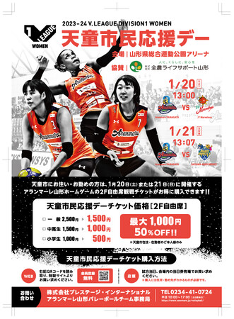 プレステージ・インターナショナル アランマーレ 女子バレーボールチーム(所在地:山形県酒田市、以下「アランマーレ山形」)は、2024年1月20日(土)、21日(日)にホームゲーム「2023-24 V.LEAGUE DIVISION1 WOMEN 天童大会」を開催することをお知らせいたします。