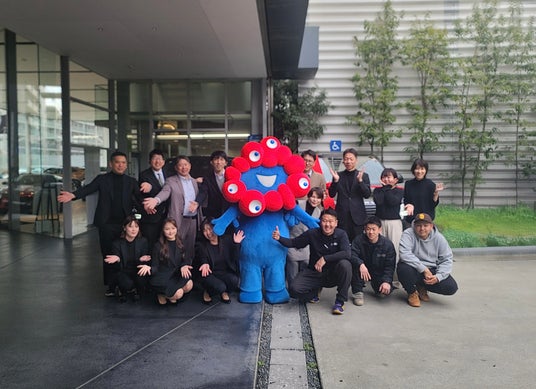 公式キャラクター・ミャクミャクとともに