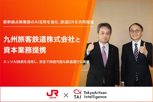 Tokyo Artisan Intelligence株式会社(本社:神奈川県横浜市、代表取締役 中原啓貴(CEO,CTO)、代表取締役 岡安一将(COO)、以下:TAI)は、九州旅客鉄道株式会社(本社:福岡県福岡市、代表取締役社長執行役員 古宮洋二、以下:JR九州)と、2025年5月30日(金)に資本業務提携したことをお知らせいたします。