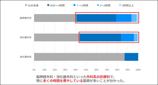 また、診療科によって費やしている時間や負担となっている作業に違いがあることが分かりました。