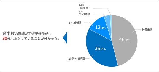 - 医師のうち過半数(54%)が手術記録作成に30分以上費やしている。