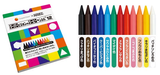 ブランド周年キャンペーンを記念して、「クッキリまつげ色」「フンワリめもと色」など、きれいな瞳を描くための12色セットによる「クーパービジョンオリジナルのクーピーペンシル(R)」が誕生しました。