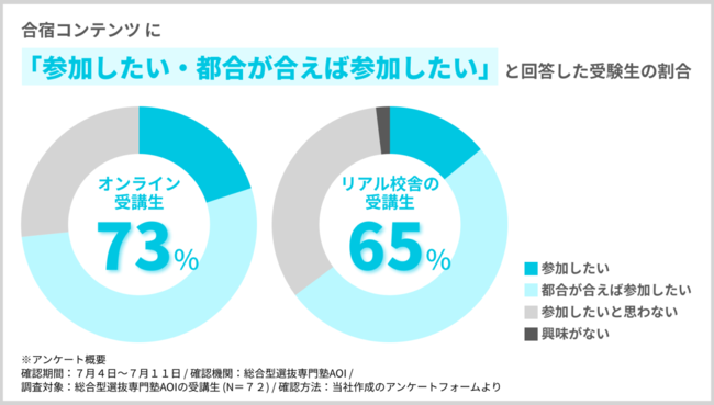 そのうち「参加したい」「都合が合えば参加したい」と回答した生徒数を比較すると、オンライン校で対策をする生徒の方が約8%高いことがわかった。