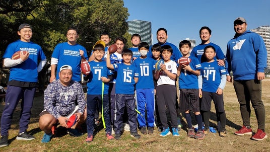 キッズフラッグフットボールチームには、グレーター品川地域の子供たちが多数参加しています。