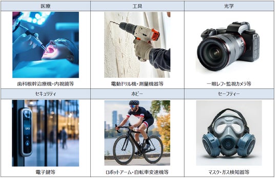 タキロンシーアイが扱うマイクロモータは、電子錠や自転車変速機、防塵マスク等の様々な用途での使用実績があり、さらに優れた制御性や省エネルギーの特性を持つことから、高度な制御が求められる医療・ロボット分野での活用が期待されます。