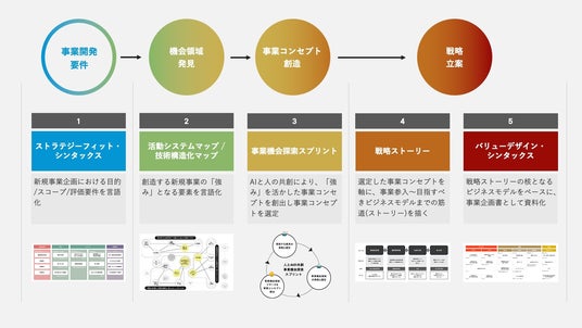 今回提供を開始した「事業構想スプリント」は、“顧客起点”だけでなく、これまでの既存事業で培ってきた大企業の強みを活かして、新規事業を生み出すフレームワークです。