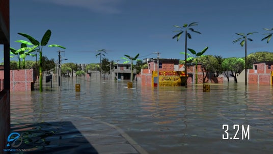 洪水災害時の影響シミュレーション(3.2m浸水時の市街地)