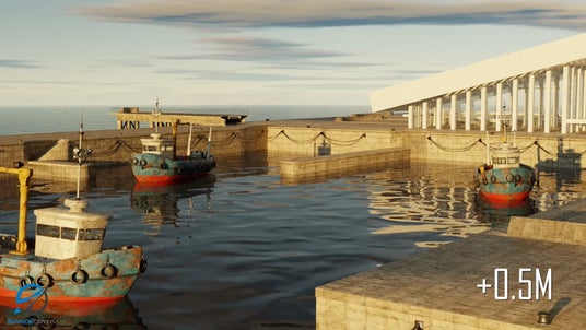 洪水災害時の影響シミュレーション(0.5m浸水時の港)