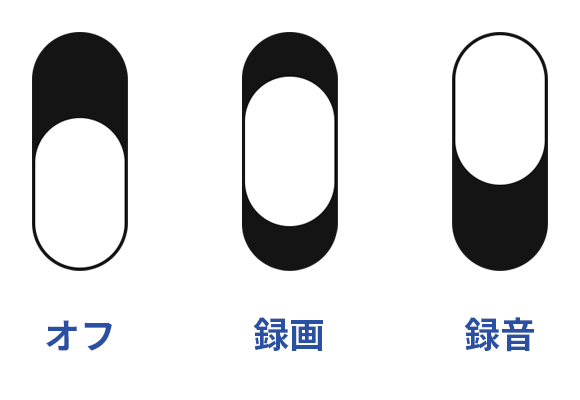 本体の右側のスライドスイッチで簡単にOFF/録音/録画を切り替えることができます。スイッチを録音/録画モードにスライドすると、「D7+」は裏側にある青ランプ/赤ランプが3回点滅した後、自動的に録音/録画を開始します。スイッチをOFFにすると、「D7+」は録音/録画した内容を自動保存してシャットダウンします。