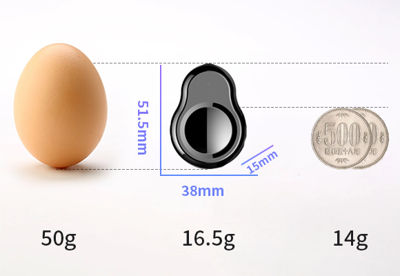 ※「JNN D7+」のサイズは51.5mm*38mm*15mmで、どこにでも持ち運びやすいのがポイントです。重さはたったの16.5g(約2枚の500円玉分)で長時間連続使用しても負担を感じません。