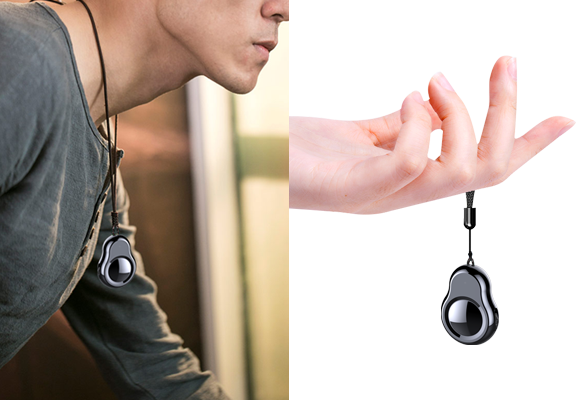 「D7+」の上部にある穴にひもを通すと、オリジナルのペンダントやストラップになります。紛失しにくいだけでなく、コンパクトサイズなので相手への圧迫感を低減でき、自然なインタビューがしやすいのもポイントです。