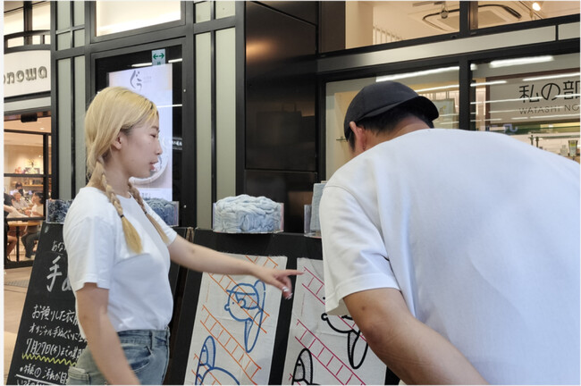 2023年7月1日(土)より開始した第二弾においては回収の継続と共に、第一弾で回収した衣服の一部をクラボウ独自のアップサイクルシステム「L∞PLUS」によって繊維原料として再資源化し、手ぬぐいとハンカチを商品化。JR中央線、JR南武線の一部の駅構内及び隣接する商業施設「セレオ」「nonowa」にて販売を開始しておりましたが、7月24日(月)より、文化服装学院同科学生がこの販売活動に合流。学生たちは駅の利用者に対して、MAWASU STATIONの商品の来歴を知ってもらい、魅力をアピールするために、ビジネスプランニングの学びや個々のセンス、特技を生かしながら、ファッションが社会に対してできること、サーキュラーエコノミーについての深い理解と共感をどのように波及させていくかについて実践を通して学びます。