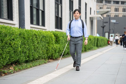 視覚障がい者は「情報障がい者」とも言われ、視覚的に示される様々な情報へのアクセスに困難を抱えています。歩行を支える福祉機器はデジタル技術の進歩によって、スマートフォンの音声ナビゲーションを用いたルート確認が可能となった一方で、歩行時には白杖や盲導犬を用いた安全確認にも注意を払う必要があるため、聴覚や白杖操作などを通じた多くの情報処理に負担を感じながら外出しています。これらの負担から単独での外出を控える方が多く、国土交通省の調査(※4)によると、週に3~4回以上外出する人の割合が「健常である」人では、73%なのに対し、「弱視である」という方では56%、「ほとんど見えない/一人で外出できる」では39%、「ほとんど見えない/外出には介助が必要」では26%に低下します。