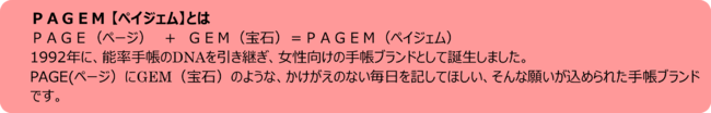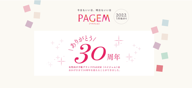 能率手帳のDNAを引き継ぎ、1992年に女性向け手帳ブランドとして誕生した『PAGEM』は、おかげさまで30周年を迎えることができました。これからも、『PAGEM』をどうぞよろしくお願いいたします。