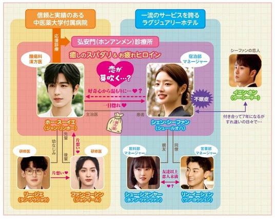 「蒼蘭訣~エターナル・ラブ~」でのブレイクをきっかけに、“国宝級イケメン”として一躍スターの座へ駆け上がったジャン・リンホー。2024年にはGUCCIのブランドアンバサダーに就任し、俳優としてもファッションアイコンとしても存在感を放つ彼が、本作では知的で穏やかな漢方医という“癒しのスパダリ”を熱演。白衣とマスク姿の端正なビジュアルに加え、眼鏡越しの微笑みや植物を愛でる繊細なまなざし、そして恋の駆け引きで見せる少し策士な一面まで、彼の新たな魅力が詰まったキャラクターに夢中になる視聴者が続出! 一方、ヒロインを演じるのは、「ゼロ婚~恋はプロポーズのあとで~」「夏花」で瑞々しい存在感を放つ若手注目株シュー・ルオハン。まっすぐで繊細な演技に定評のある彼女が、仕事も恋も頑張りすぎてしまうヒロインをリアルに体現。ジャン・リンホーとの息の合った掛け合いは、思わず笑みがこぼれるほど自然で、胸キュン度MAX(ハート) いま最も輝くライジングスター同士が紡ぐ、癒しとときめきに満ちた極上のラブストーリ ー!
