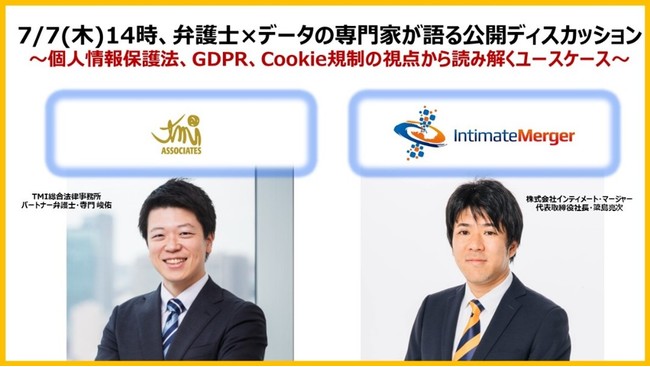 国内最大級パブリックDMPを提供するデータプラットフォームカンパニーの株式会社インティメート・マージャー(本社:東京都港区、代表取締役社長:簗島 亮次、以下当社)は、データ・プライバシー領域における法律と現場の双方に精通した国内有数の専門家であるTMI総合法律事務所の寺門峻佑弁護士と無料オンラインセミナー「弁護士×データの専門家が語る公開ディスカッション~個人情報保護法、GDPR、Cookie規制の視点から読み解くユースケース~」を7月7日(木)14時より共催することをお知らせします。