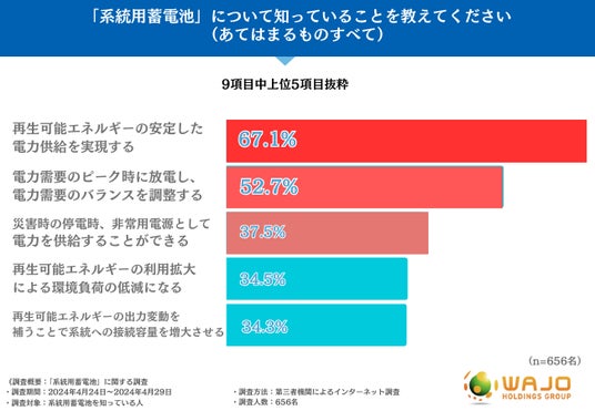 そこで今回、系統用蓄電池の企業投資向けサービス「ECO GRID」(https://wajo-holdings.jp/farm/lp-battery/) を運営する株式会社和上ホールディングスは、「系統用蓄電池」を知っている全国の20代~60代の男女を対象に「系統用蓄電池」に関する調査を実施しました。