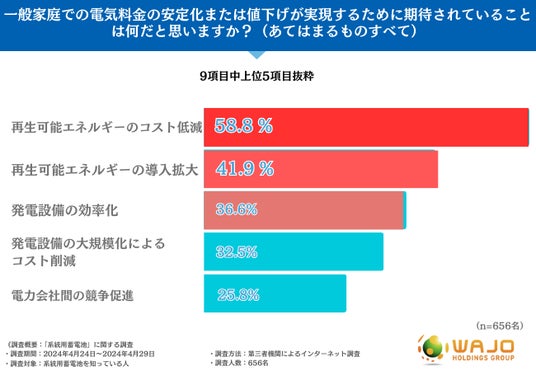 そこで、『一般家庭での電気料金の安定化または値下げが実現するために期待されていることは何だと思いますか?(あてはまるものすべて)』と質問しました。