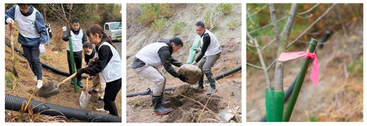 桜の苗木寄付や、社員が現地の植樹活動へボランティア参加し、地域社会とともに命を守りつなぐ取り組みを推進しています。