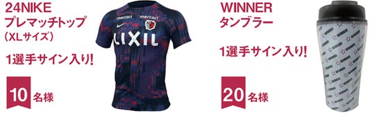 ご来場いただいた方の中から抽選で30名様に「サイン入りプレマッチトップ」や「サイン入り WINNERタンブラー」が当たるハーフタイム抽選会を実施いたします。入場時に配布される「WINNERでともに戦いましょう!アントラーズ応援キャンペーン」のチラシに抽選番号が記載されています。当選者はハーフタイムの大型ビジョンにて発表いたします。ぜひご注目ください!
