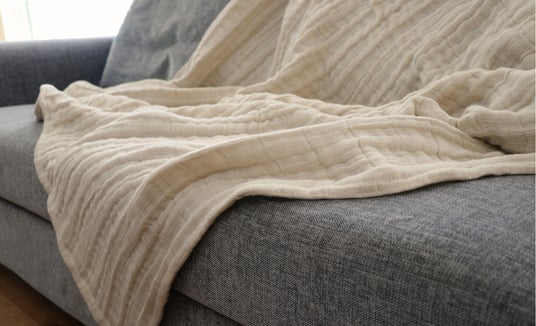 仕上がるのは1日10枚!日本一の毛布のまち「大阪府・泉州」から、熟練の職人がゆっくり丁寧に作った風合い豊かな「コットンリネンの無添加ガーゼケット」をお届けします。