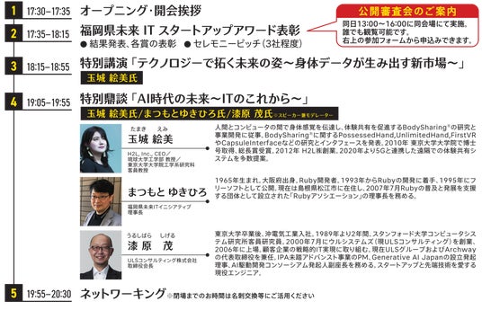 公開審査のため、誰でも観覧可能です。観覧希望の方は上記の福岡県未来ITスタートアップフォーラム参加フォームよりお申し込みをお願いします。
